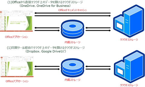 Officeアプリケーションから見たクラウドストレージは以下の2つに分類される