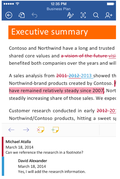 また、Windows 10上のタッチファーストのOfficeをビデオで公開しましたが、この製品のPreview版や正式版の投入時期についてはまだ明確ではありません。Windows 10の発売時期が明確になれば、Windows 10対応Officeの出荷時期も明らかになると考えています。これも日本語版はほぼ同時に製品化の準備が進んでいくことになると考えてもらっていいでしょう。Androidタブレット版と、Windows 10版によるタッチファーストバージョンは、今のOfficeに欠けているものでもあり、Officeの進化にとって、大変重要なものであると考えています。