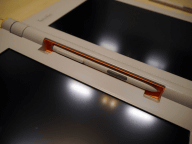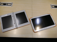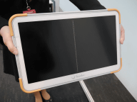現行の試作品では、10.4型の液晶ディスプレイを2つ搭載しているが、8月発売のモデルでは、15.6型の液晶ディスプレイによるタブレットになる。