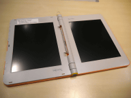 現在、実証実験で使っているのはデュアルディスプレイタイプのデバイスだ。テキスト表示側と、ノートとして書き込むディスプレイをそれぞれ用意。クラムシェル方式としている。