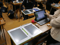 ソニーグループが開発した小中学校向け教育専用端末「Tenobo(テノボ)学習システム」を活用した実証実験が、倉敷市立多津美中学校において、今年(2014年)9月から開始されている。このほど、その様子が初めて公開された。