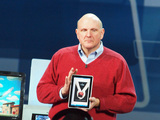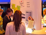 | 年内に発売されるというHPのスレートPCを手にするMicrosofのスティーブ・バルマーCEO | ファブレス半導体ベンダであるMarvell社のブースに展示されていた電子ブックリーダー | Samsungブースのe-Bookコーナーは、男女を問わず多くの来場者が足を止めていた |