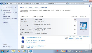 | プロセッサが1.9と足を引っ張っているが、メモリやプライマリハードディスクのスコアは高い |