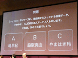 トークセッションでは、「セールスポイント」、「骨が丈夫」、「アプリ百本ノック」、「千差万別」などのキーワードが示され、開発に関わるこぼれ話などが披露された。
