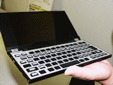 連続動作時間は約10時間。2軸ヒンジを採用し、360度のディスプレイ開閉を可能にし、さらにこの薄型の筐体内に、HSUPAおよび無線LANを内蔵。キーボードの下はほとんどがラミネート型リチウムイオンバッテリで構成されており、基板は極めて小さいスペースに収められているという。