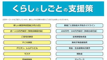 〜家賃や給付金、アビガン、PCR検査、DV相談、文化・芸術などキーワード別に案内