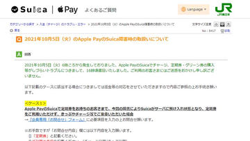 Apple PayでSuicaが使えない障害が発生中。PASMOも