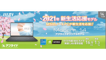 MSI、10万円前後で第11世代Core i5とGeForce搭載の14型薄型ノート