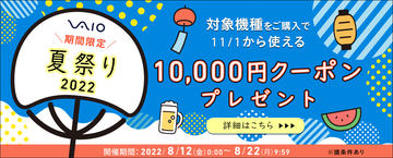 VAIO、お盆限定の1万円分クーポンを配布中。ストア祭りでPCがさらに安く買えるチャンス