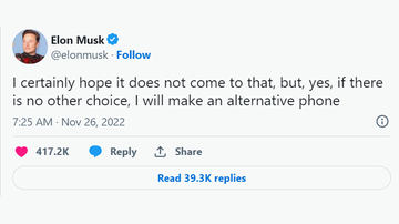 イーロン・マスク、「Twitterアプリがストアから排除されたらスマホを作る」と発言