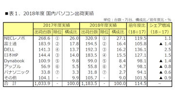 2018年度の国内PC市場は出荷台数14.5%増。法人需要が個人需要を牽引