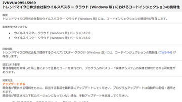 ウイルスバスター クラウドに任意コード実行の脆弱性。修正パッチを提供中