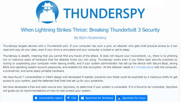 Thunderboltに数分でハッキング完了可能な脆弱性。2011年以降のPCが対象