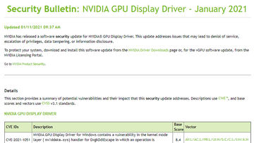 NVIDIA GPUドライバに複数の脆弱性。最新版への更新を