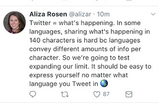Twitter、280文字までツイートできる試験開始。ただし、日韓中以外