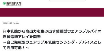 汗で発電するウェアラブル電池、東京理科大が和紙をベースに開発