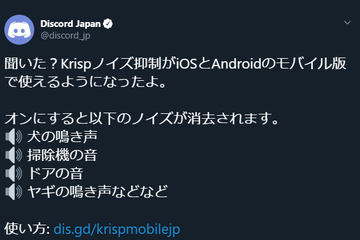 Discordのノイズ抑制機能がAndroid/iOSにも実装。ヤギの声も軽減
