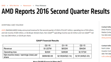 AMD、2016年Q2の売上高は前年同期比9%増の10億2,700万ドルに