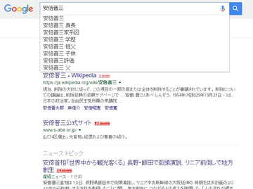 Google検索のキーワード予測。人物名の場合は不適切な言葉の組み合わせを意図的に排除