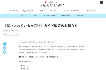 メルカリ、電子チケット/ダウンロードコンテンツなどが10日より出品禁止に