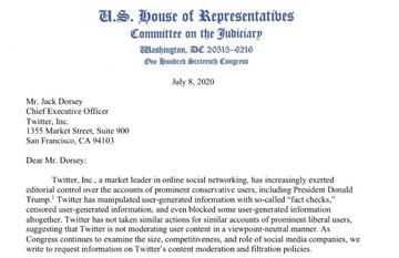 米下院司法委、Twitterによる保守派ツイートへの編集権行使に抗議