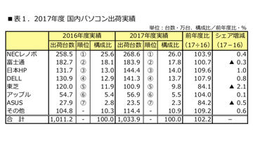 国内PC市場、前年比出荷台数2.2%増を記録。働き方改革などで法人需要増加