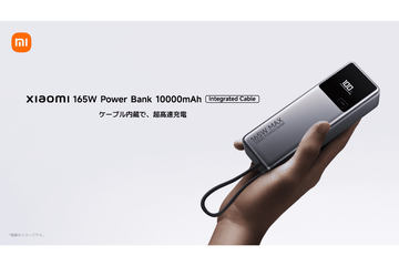 Xiaomi、ケーブル内蔵で急速充電対応の10,000mAhモバイルバッテリ