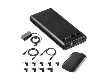 電源自動OFF機能“非”搭載で容量17,400mAhのモバイルバッテリ。DC変換プラグ9種を付属