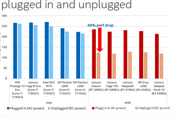 Intel、“AMDのノートはバッテリ駆動時に性能が大きく低下”と指摘