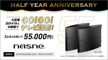 nasneが2台同時購入で4,600円引き。9月末までの限定キャンペーン