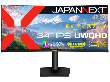 緩やかな湾曲率3,800Rの34型モニター、JAPANNEXTから