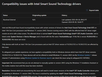 Windows 11 24H2+Intel SSTのブルスク問題が解消