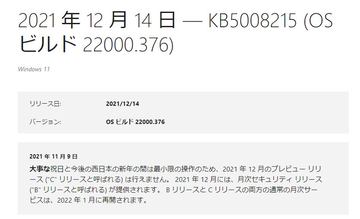 Windows 11向け月次パッチ「KB5008215」配信。セキュリティが向上