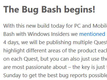 ユーザーがバグ潰しクエストに参加できるWindows 10 Build 14332