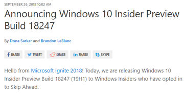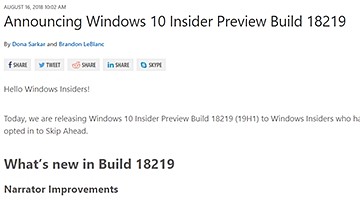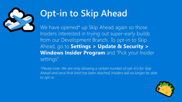 19H1よりも先のWindows 10プレビュー版を試せる「Skip Ahead」が復活