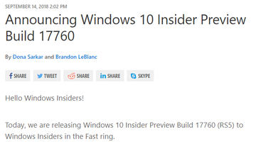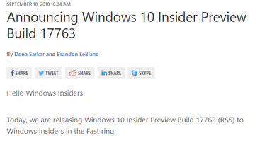 Windows 10プレビュー版のBuild 17763と18242が同日に提供