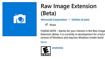 Windows 10プレビュー、RAWファイルのサポートを強化