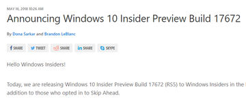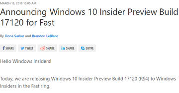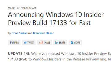 Windows 10 RS4が完成。Insider向けに配信開始