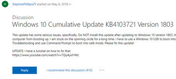 ブルースクリーン発生でWindows 10 RS4のビルドが急遽更新
