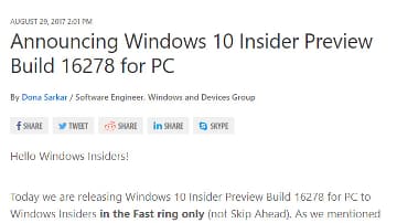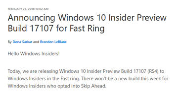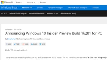 Windows 10プレビュー版がFall Creators Updateの製品版相当に昇格