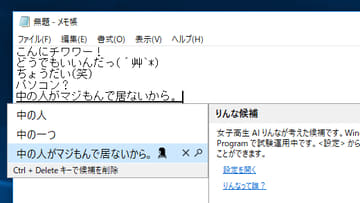 次期Windows 10に女子高生AI「りんな」がIMEとして実装
