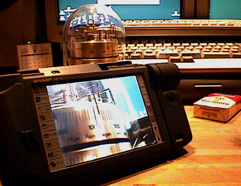 こうやって置くとまるでシャープの液晶ビューカムだ。ともあれ、デジカメ(DC-2L)で斜め横から撮影してもかなりきれいに映るパワフルな液晶。これをフルにモニタとして使えるので、そこらのデジカメよりずっと使いやすい。