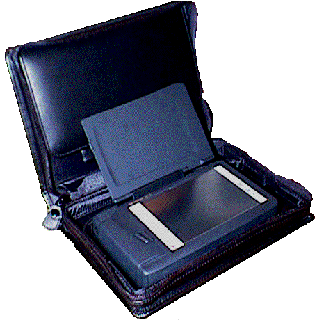 既にカラーザウルス用のたくさんのオプション品を購入した。MI-10用ソフトケース、MI-10DC用レザーケース、デジタルカメラカード用ハードケース、MI-10用液晶保護シート、MI-10用8MBフラッシュメモリカード、28.8Kbpsモデムカード、デジタル携帯電話アダプター、バッテリーパック。もちろんどれもシャープ純正品だ。戦況としてはやや俺の勢いが強いといったところだが、そんなことはまあよしとして、気に入っているオプションはやはりMI-10DC用レザーケースだ。デジタルカメラカードを挿入した状態のカラーザウルスをスッポリ納めることができ、さらに通信用のモジュラーケーブルや予備バッテリーやACアダプタが入るスペースがあり、さらに名刺やカードを入れるポケットまである。完全武装派にはピッタリのゴージャスなケースだ。A5サイズのThinkPadよりデカイというところが渋い。ザウルスの基本コンセプトと背反しているところが愉快だ。でも10万円もする電子手帳を落として壊しちゃうのは悲しいので、ぜひこのケースで守ってあげてください。