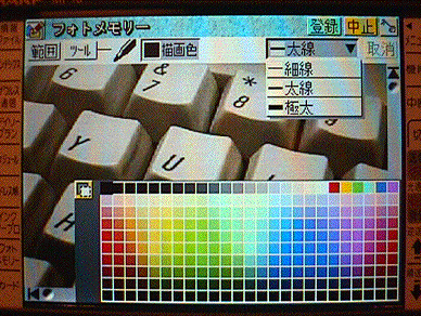 モノクロのザウルスにも手書きメモという機能があったが、これはそのカラー版。手書きメモにあったペンツールや定規、スタンプなどのツールはすべてカラー化されたので、カラフルな地図なども描ける。また画像の色調調整などの機能もあるので、写真をとりあえず撮っておいて、あとで見やすく調節することもできる。