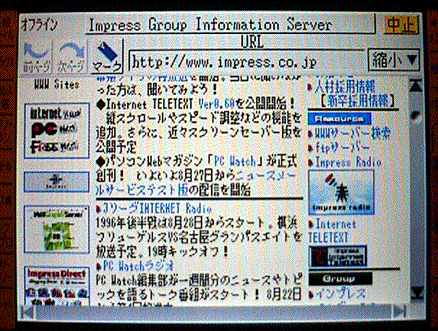 便利なオフライン機能。ブラウザの表示は縮小表示(上)と拡大(通常)表示(下)が可能。