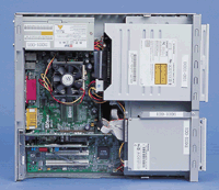 Profileカードの採用によって、microATXマザーボードを採用しながら高い省スペース性を実現している。また、スリムタワー型の筐体を採用することで、ベイの数は限られるが、少ないベイを有効に使うために、DVD-ROM・CD-R/RW複合ドライブを採用したことも高く評価したい。