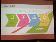 2日に都内で開かれた製品発表会の冒頭では、同社代表取締役社長のボブ・セン氏が挨拶。「この夏の暑さに反してPC市場が冷え込んでいるが、これは開発者が作っている製品(コンテンツ消費型デバイス)とユーザーのニーズ(生産性向上のためのデバイス)が食い違っていることに起因する。今回のSwitch Alpha 12とLiquid Jade Primoが象徴する通り、我々はユーザーの生産性を高めるデバイスの開発に注力しており、特に日本において需要の高いWindowsデバイスを幅広く提供し、ユーザーに選択肢を与え、市場を盛り上げたいと考えている」と語った。
