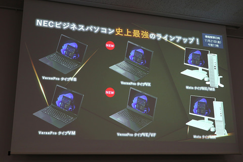 この攻めの商品作りの第1弾は7月発表の「VersaPro UltraLite タイプVY」で、それに続いて8月に14型モバイルノートの「VersaPro タイプVM」、13.3型モバイルノートの「VersaPro タイプVB」、スリムタワーデスクトップ「Mate タイプME/MB/MA」を投入。今回の15.6型ノートの投入をもって、ラインナップが充実した。