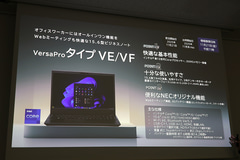 VersaPro タイプVXとVersaPro タイプVE/タイプVFはともに、NEC PCがNEC法人PC事業を吸収して以来、方針を転換した“攻めの商品作り”を行なったビジネス向けPCで、スタンダードな15.6型ノートとなっている。
