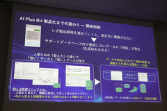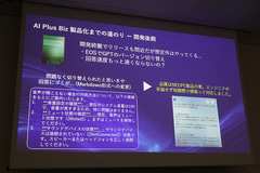 ちなみに、AI Plus Biz開発の段階では、PCの状態でプロンプトの補完の仕方に対して研究や開発が必要だったり、サポート情報がさまざまなフォーマットで提供されているため、意図しないデータの強弱が発生して想定外に精度が出ないといった課題が発生。また、GPTのサポート終了でバージョンを切り替える際に問題が生じたり、回答の出力速度を上げる必要があるといった課題があった。